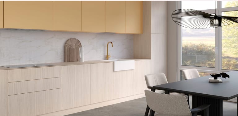 Le ton naturel de ce chêne moderne est conçu pour jouer un jeu de « mix and match » aux possibilités infinies qui vous permet de continuer à vous reconnecter avec l’extérieur et la nature.